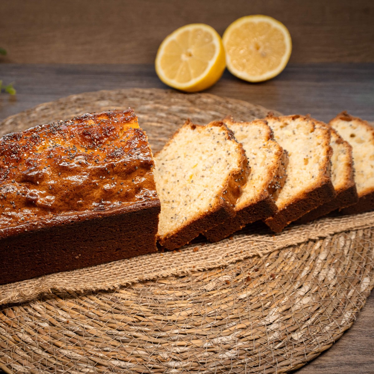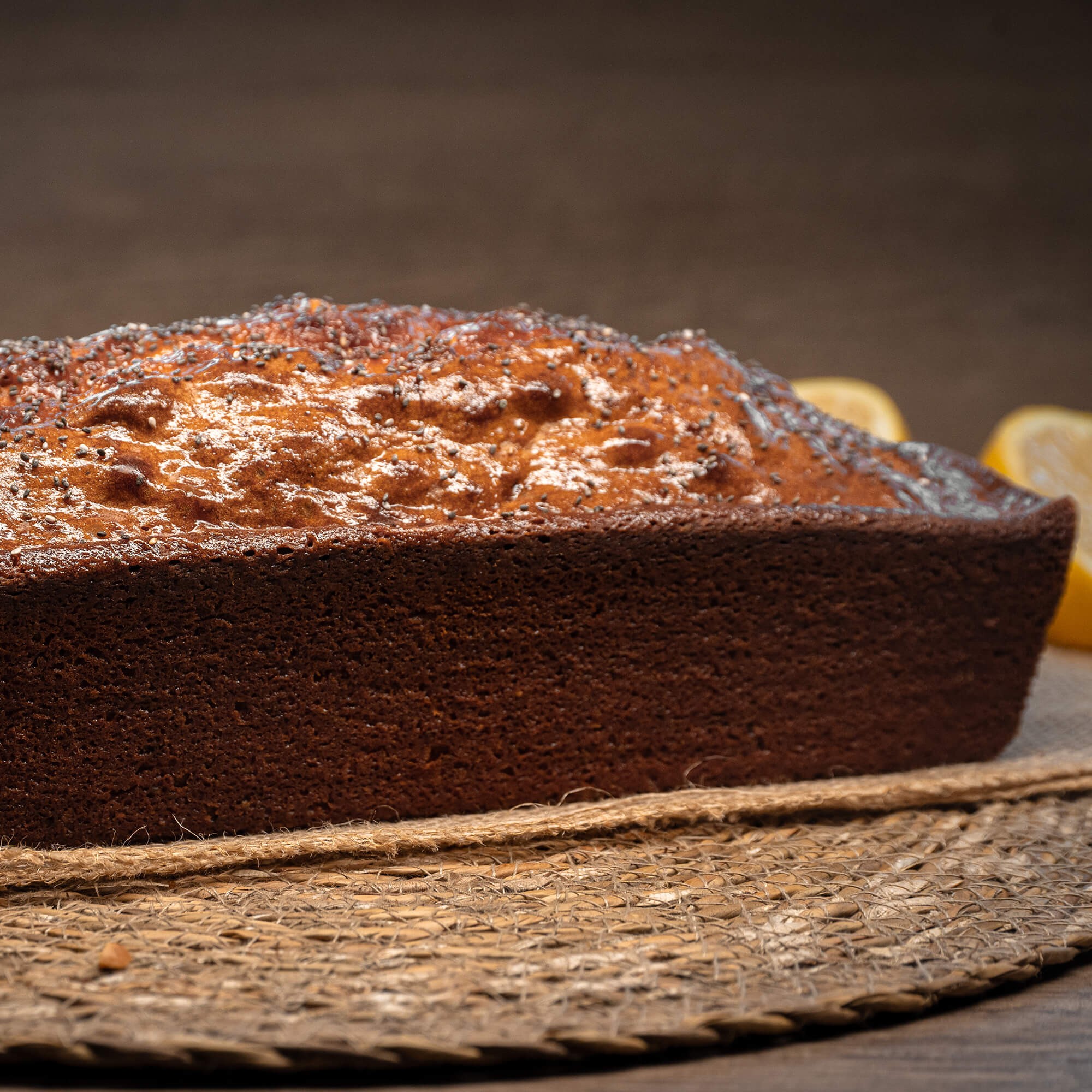 Cake moelleux au citron, relevé par des graines de pavot croquantes.
